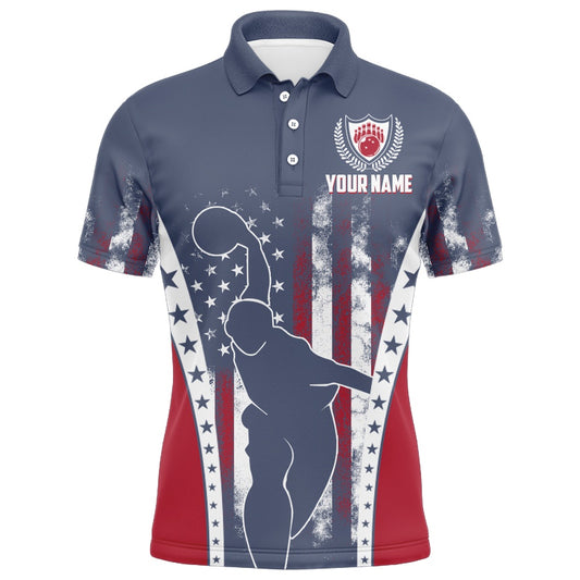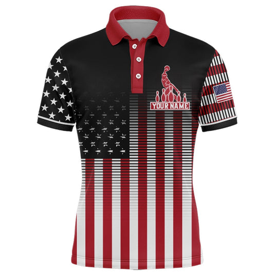 Custom Bowling Polo Shirts, Usa Flag Bowling Polo Shirt For Men Personalized Bowling Jersey Patriotic Bowling Team League Shirt