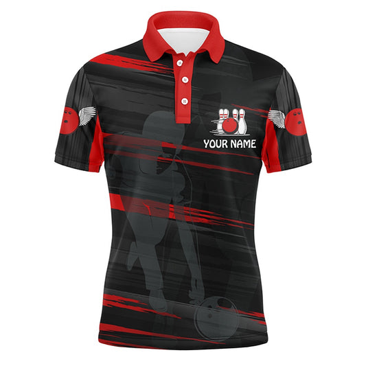 Custom Bowling Polo Shirts, Personalized Bowling Polo Shirt For Men Red And Black Bowling Shirt For Team Custom Bowling Jerseys