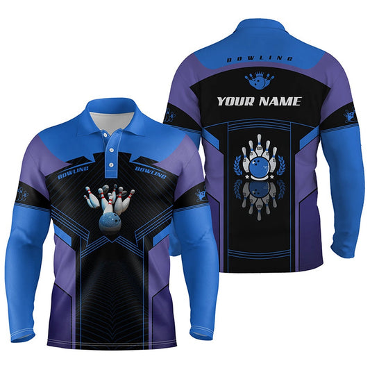 Custom Bowling Polo Shirts, Personalized Bowling Polo Shirts For Men Custom Bowling Team Shirts Jerseys Gift For Bowlers Blue