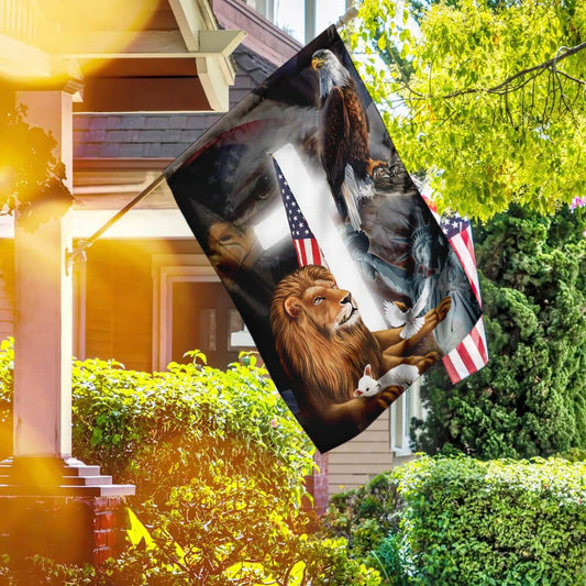 Christian Garden Flags, Lion and Lamb American Flag, Christian House Flags, Christian Cross Flag, Faith Flag
