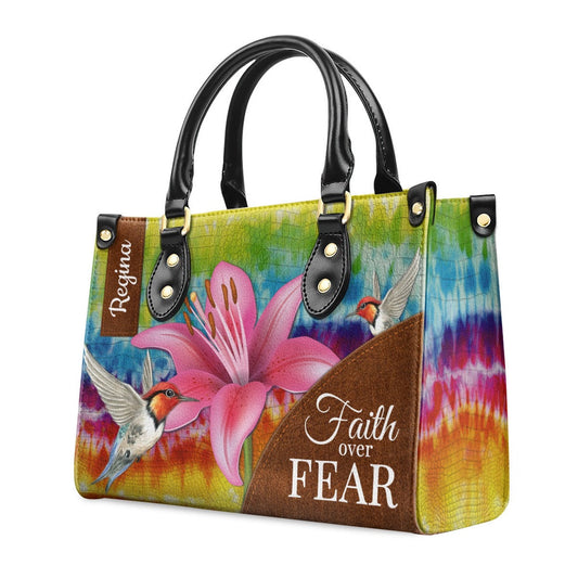 Personalized Christian Leather Bag, Faith Over Fear - Awesome Personalized Lily Leather Handbag, Faith Handbag