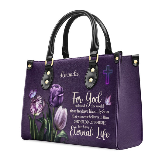 Personalized Christian Leather Bag, Elegant Personalized Leather Handbag - For God So Loved The World, Faith Handbag
