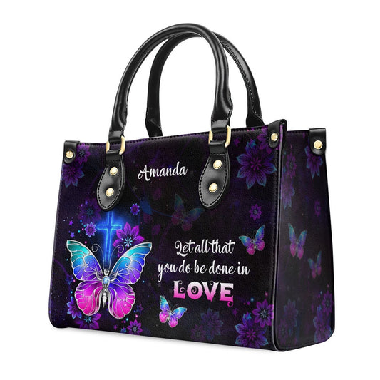 Personalized Christian Leather Bag, 1 Corinthians 1614 Let All You Do Be Done In Love Leather Handbag, Faith Handbag