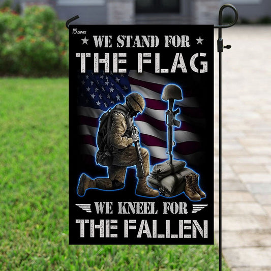 US Veteran Flag, Veteran Kneeling Cross American Flag Stand For The Flag Kneel For The Cross Flag, Veteran Garden Flags