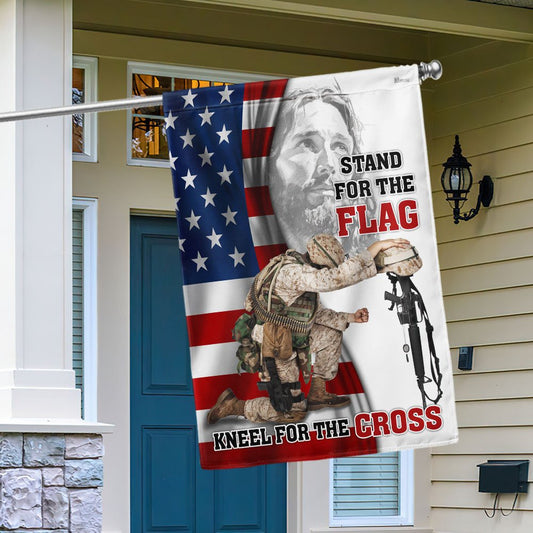 US Veteran Flag, Veteran Kneeling Christ Cross Flag Stand For The Flag Kneel For The Cross Flag, Veteran Garden Flags