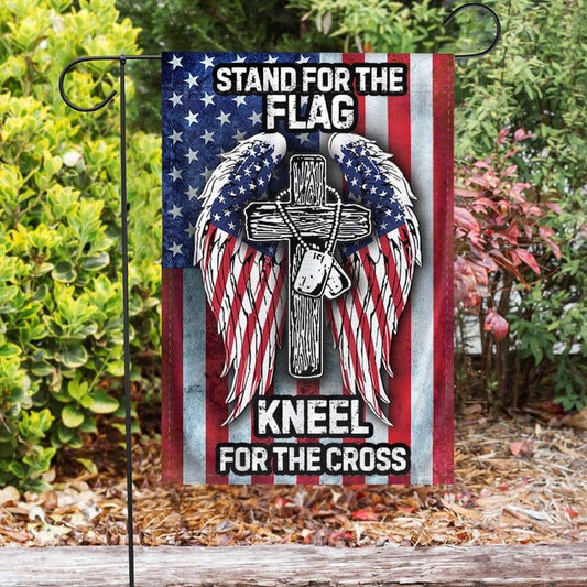 US Veteran Flag, Memorial Day Veteran Stand For The Flag Kneel For The Cross Flag, Veteran Garden Flags