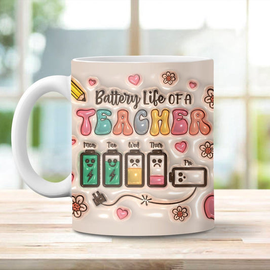 3D Inflated Teacher Mug, 3D Battery Life Of A Teacher Inflated Mug, Teacher 3D Coffee Mug, Back To School Mug