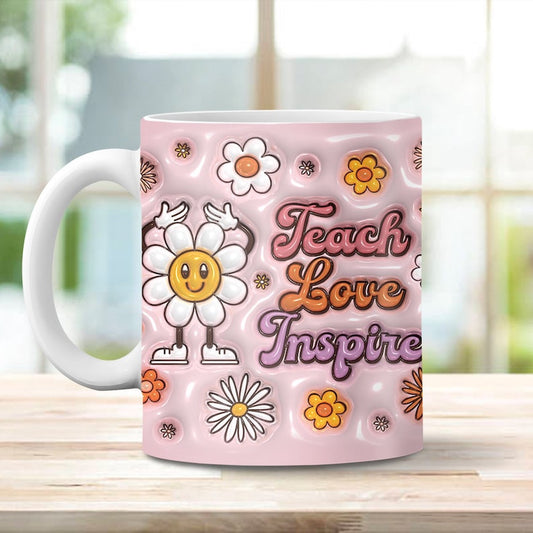 3D Teach Love Inspire Inflated Mug, 3D Coffee Mug, Cute 3D Inflated Mug, Birthday Gift, Christimas Gift