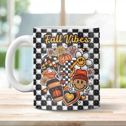 Fall Vibes 3D Mug, 3D Inflated Fall Vibes Coffee Mug, Pumpkin 3D Inflated Mug, Gift For Thanksgiving