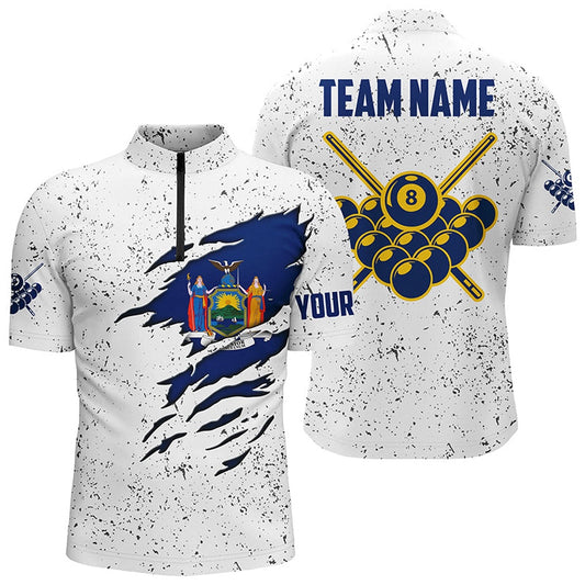 Billiard Polo Shirts, 8 Ball Pool New York Flag Personalized Billiard 'S Shirts Custom 8 Ball Pool Polo Shirts, Billiards Team Shirts