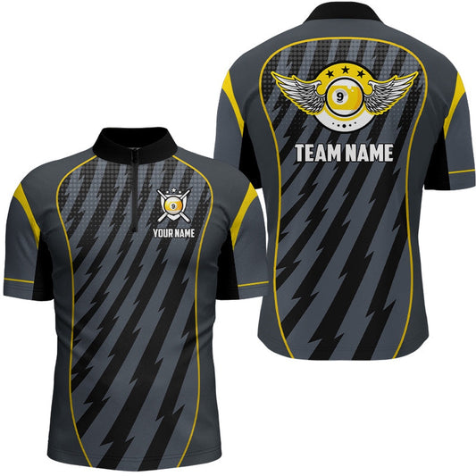 Billiard Polo Shirts, 9 Ball Wings Custom Name Billiard Polo & Quarter Zip Shirts, 9 Ball Billiards Jerseys, Billiards Team Shirts