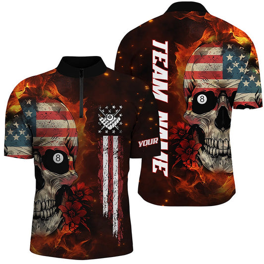 Billiard Polo Shirts, American Flag Skull Fire Billiard Polo & Polo Shirts Custom Patriotic Billiard Jersey, Billiards Team Shirts