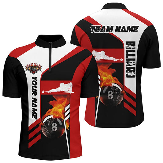 Billiard Polo Shirts, Red Billiard Jersey Flame 8 Ball Pool Custom Billiard Shirts Team League Billiard Uniform, Billiards Team Shirts