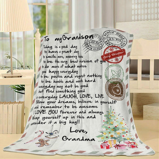 Blanket Christmas Gift For Grandson, Keepsake Gifts For Grandsons, Letter To Blanket, Christmas Blanket