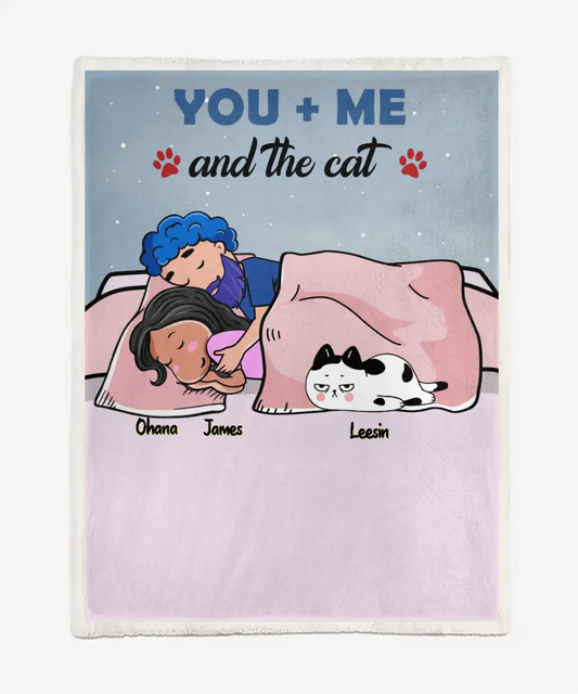 Custom Sherpa Fleece Blanket For Couples, Birthday Gift With Personalized Name Dad Mom Pets, You Me And The Pets Blanket