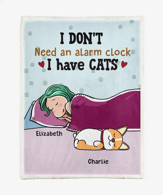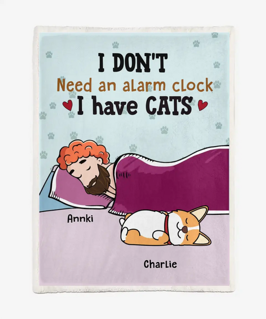 Personalized Blanket For Dog Cat Lovers - Dad Mom With Lazy Pets - I don't need an alarm clock - Choose up to 7 Pets