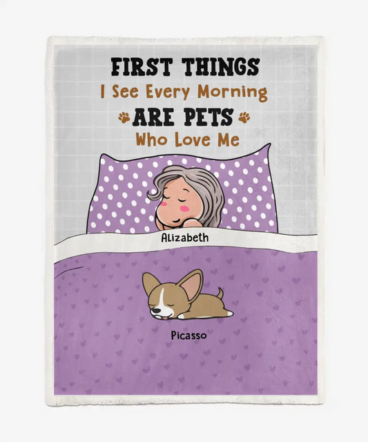 Personalized Blanket For Couples Pet Lovers - Cute with Personalized Name Dad Mom Pets, You Me and the Pets Up to 9 Pets Dogs Cats