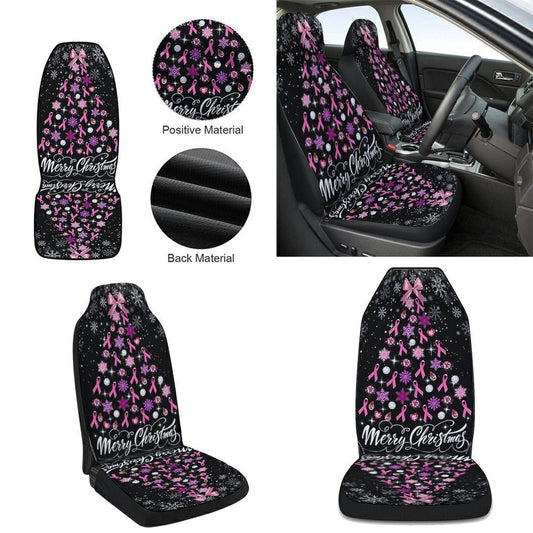 Breast Cancer Christmas Merry Christmas Christmas Tree Cars Seat Cover, Christmas Car Seat Covers, Car Decor Gift