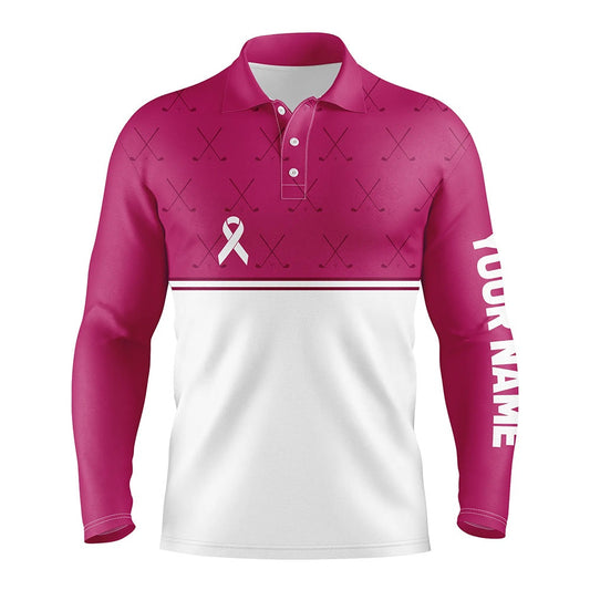 Golf Polo Shirts, Breast Cancer Awareness Golf Shirts Custom Mens Golf Polos Shirts, Pink Ribbon Golf Shirts, Custom Golf Shirts