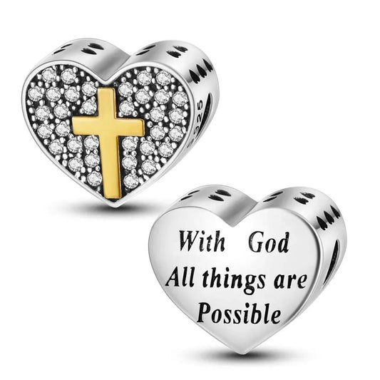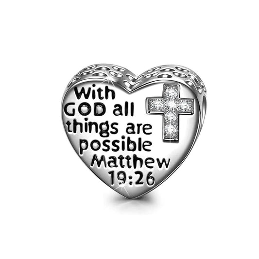 With God all things are possible 925 Sterling Silver Christian Charm For Bracelet, Religious Bracelets, Christian Gift