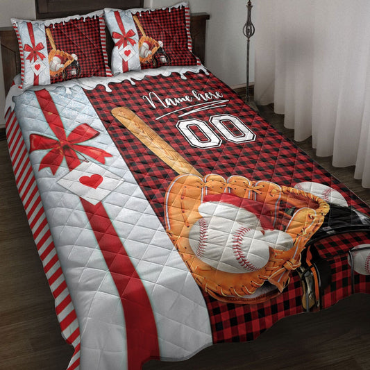 Personalized Baseball Quilt Set, Baseball Santa Hat Withmas Quilt Blanket, And Number Bedding