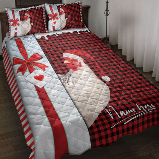 Personalized Chicken Quilt Set, Chicken Santa Hat Withmas Letter Quilt Blanket