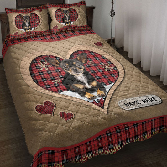 Personalized Australian Shepherd Quilt Set, A Ustralian Shepherdmas Heart Quilt Blanket