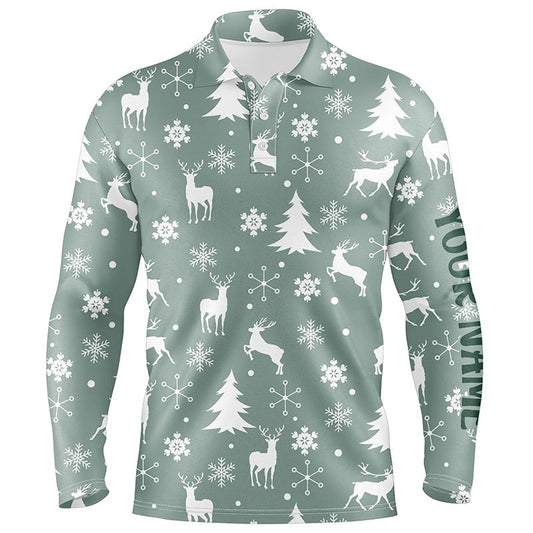 Golf Polo Shirts, Christmas Pattern With Reindeers Snowflakes Mens Golf Polo Shirts Christmas Golf Gifts For Men, Custom Golf Shirts
