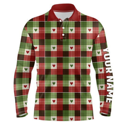 Golf Polo shirts, Mens Golf Polo Shirts Custom Green Red Christmas Plaid Pattern Shirt For Mens