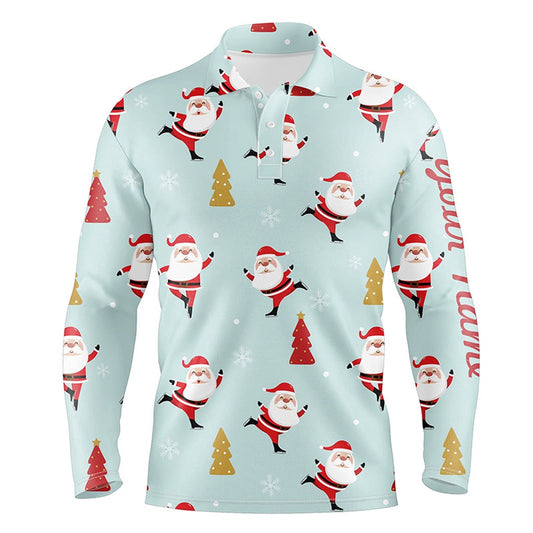 Golf Polo Shirts, Christmas Pattern With Christmas Tree And Santa Mens Golf Polo Shirts Funny Golf Shirts For Men, Custom Golf Shirts