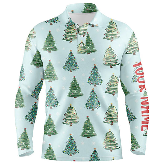 Golf Polo shirts, White Mens Golf Polo Shirts Custom Blue Christmas Tree Shirt For Mens, Christmas Golf Gifts