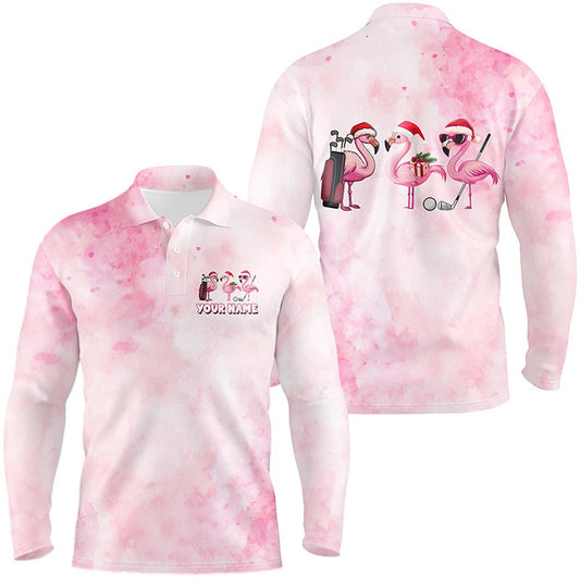 Golf Polo shirts, Pink Christmas Flamingos Mens Golf Polo Shirt Custom Funny Golf Shirts For Men Golf Gifts
