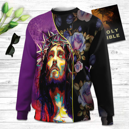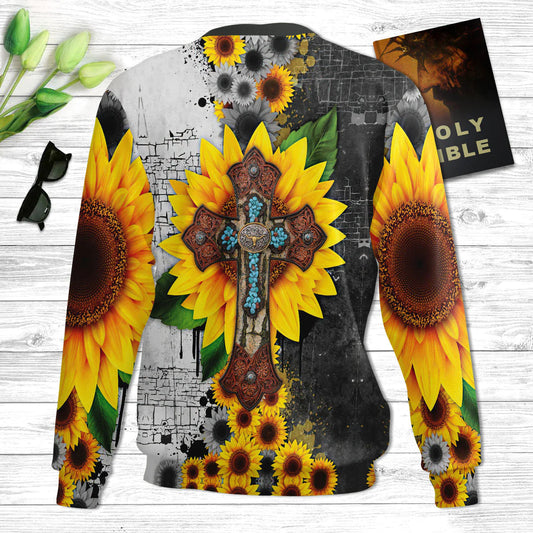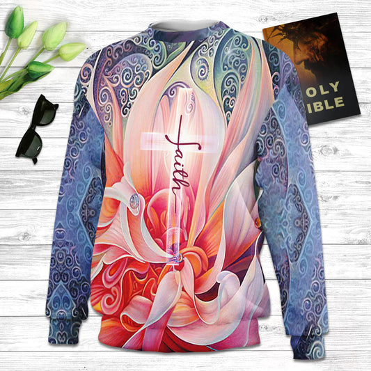 Faith Flower And Cross Ugly Christmas Sweater - Christian Unisex Sweater - Religious Christmas Gift