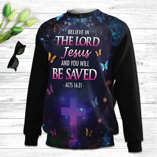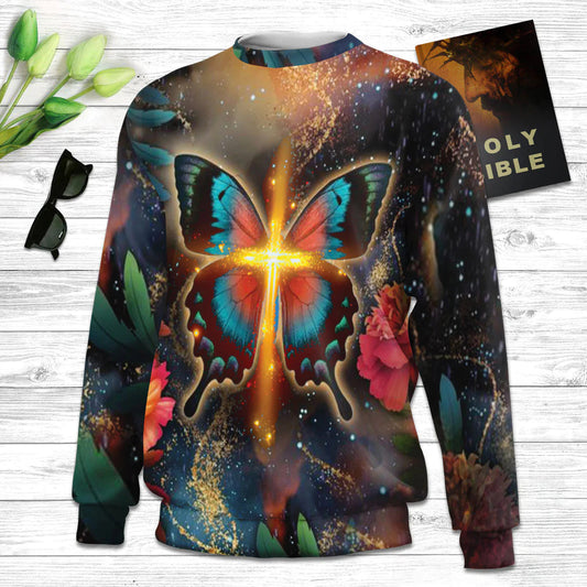 Believe In The Lord Jesus Unicorn & Cross Butrerfly Ugly Christmas Sweater - Christian Unisex Sweater - Religious Christmas Gift