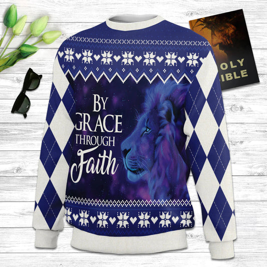 By Grace Through Faith Ephesians 28 Ugly Christmas Sweater - Christian Unisex Sweater - Religious Christmas Gift