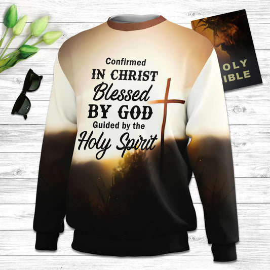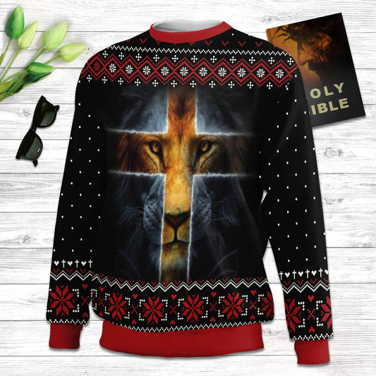 Confirmed In Christ Cross And Lion Ugly Christmas Sweater - Christian Unisex Sweater - Religious Christmas Gift
