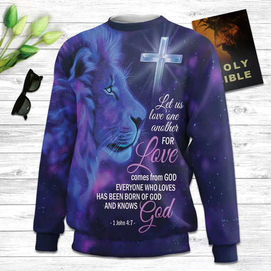 For Love Comes From God Lion & Cross Ugly Christmas Sweater - Christian Unisex Sweater - Religious Christmas Gift