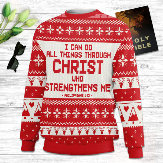 I Can Do All Things Through Christ Philippians 413 Ugly Christmas Sweater - Christian Unisex Sweater - Religious Christmas Gift