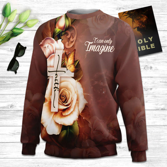 I Can Only Imagine Faith Cross And Roses Ugly Christmas Sweater - Christian Unisex Sweater - Religious Christmas Gift