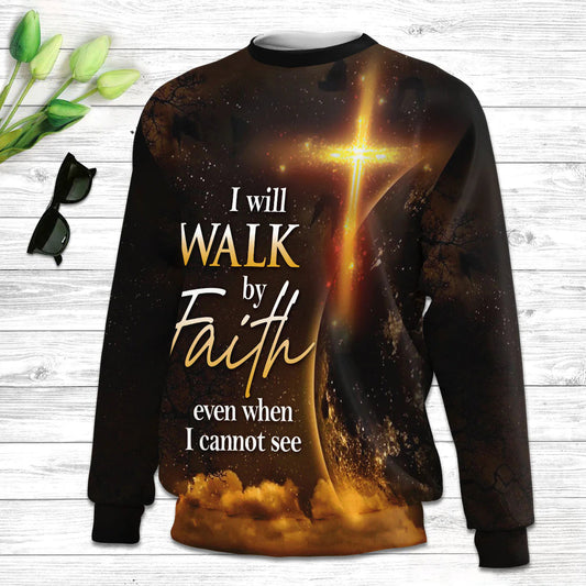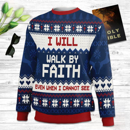 I Will Walk By Faith Even When Cannot See 2 Corinthians 57 Ugly Christmas Sweater - Christian Unisex Sweater - Religious Christmas Gift