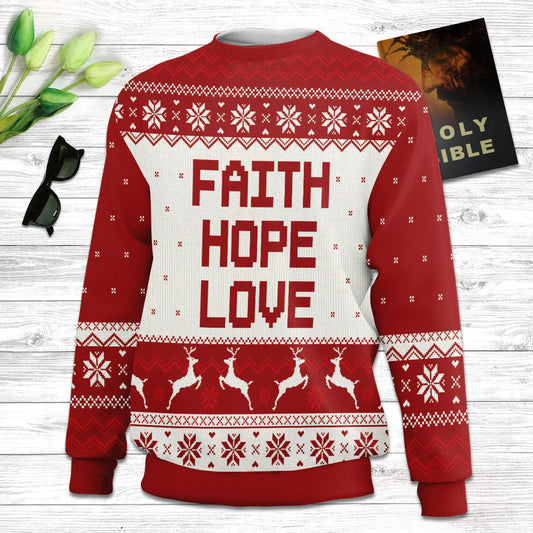 Faith Ugly Christmas Sweater - Hope Ugly Christmas Sweater - Love Ugly Christmas Sweater - Christian Unisex Sweater - Religious Christmas Gift