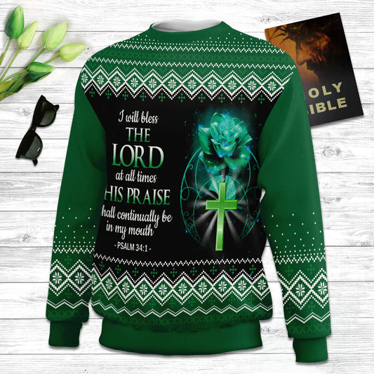 I Will Bless The Lord At All Times Psalm 341 Ugly Christmas Sweater - Christian Unisex Sweater - Religious Christmas Gift