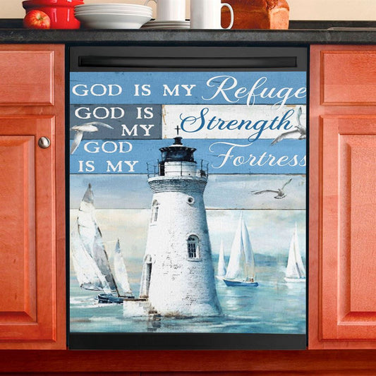 God Is My Refuge God Is My Strength God Is My Fortress Lighthouse Dishwasher Cover, Christian Dishwasher Stickers, Religious Kitchen Decor
