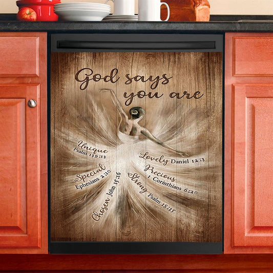 God Says You Are Ballerina Vintage Dishwasher Cover, Christian Dishwasher Stickers, Bible Verse Kitchen Decor