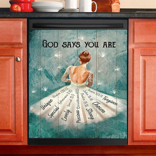 God Says You Are Ballerina White Dandelion Dishwasher Cover, Christian Dishwasher Stickers, Bible Verse Kitchen Decor