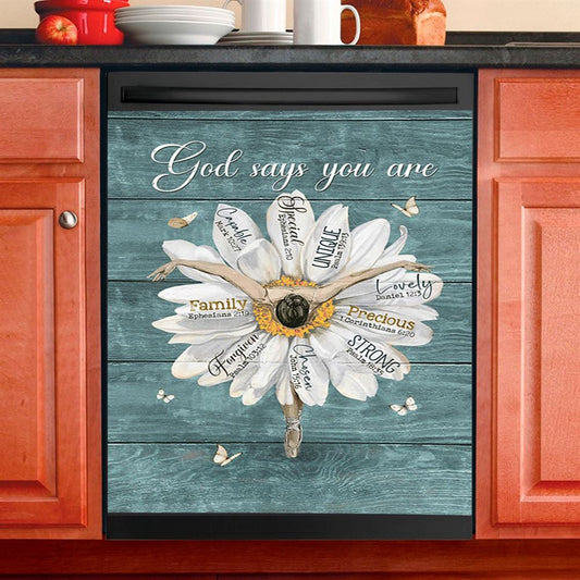 God Says You Are Ballet Dancer White Daisy White Butterfly Dishwasher Cover, Christian Dishwasher Stickers, Bible Verse Kitchen Decor