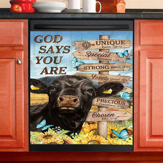 God Says You Are Black Cow Sunflower Field Dishwasher Cover, Bible Verse Dishwasher Stickers, Inspirational Kitchen Decor