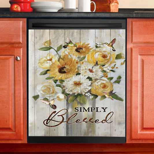 Flower Painting Hummingbird Vintage Art, Simply Blessed Dishwasher Magnet Cover, Christian Kitchen Decor