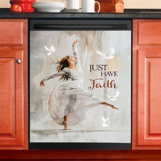 Flying Dove Just Have Faith Dishwasher Cover, Christian Dishwasher Magnet Cover, Religious Home Decor
