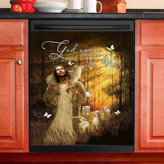 Forest The Life Of Jesus Animal Of God God Is With You Every Step Of The Way Dishwasher Cover, Christian Dishwasher Magnet Cover